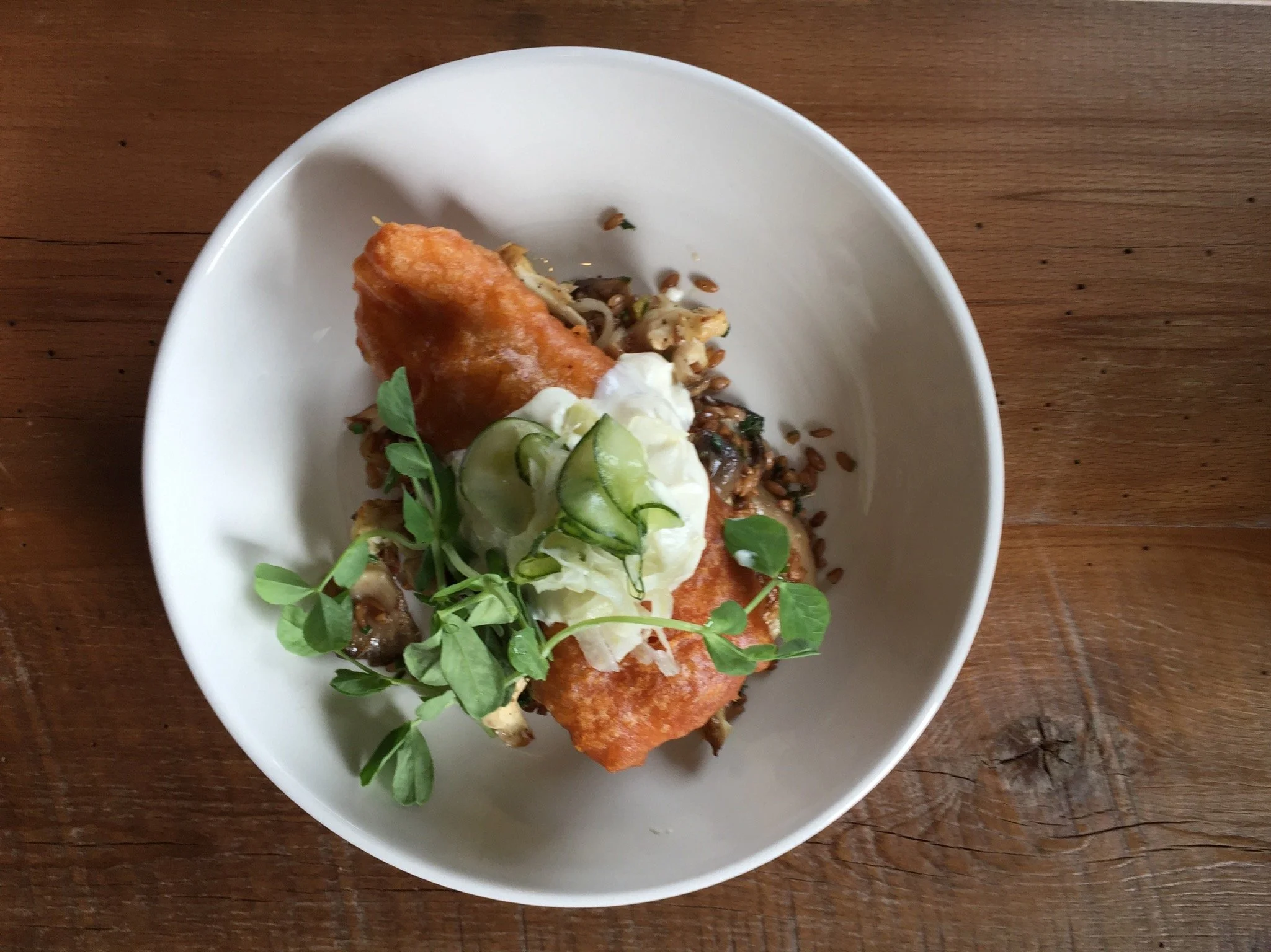 Stop by and grab a freshly made organic pita breakfast sandwich with local yogurt, vegetables, and egg or mushrooms. Add fermented hot sauce and top with your favorite chef-blended spice mix.